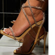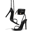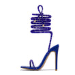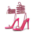 Transparent Crystal Rhinestone Women Sandals Ankle Lace-up Square Toe Wedding Party High Heels Shoes