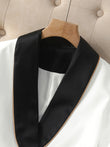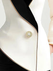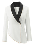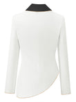 Elegant Asymmetrical White Blazer with Black Contrast Lapels