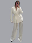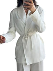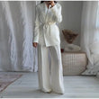 Elegant Blazer Pants Sets Women V-neck Lace up Jacket Full Sleeve Wide Leg Trousers Suit