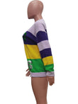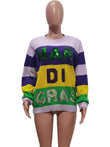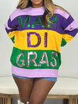 Elegant Sequin Letter Color Block Sweaters Women Loose Fit O Neck Knit Pullover