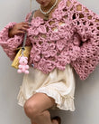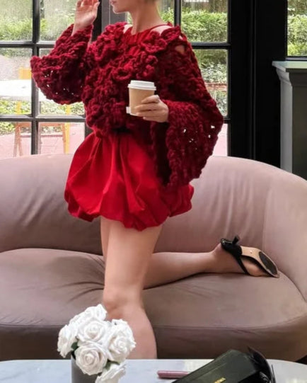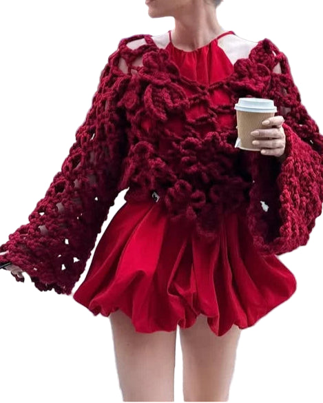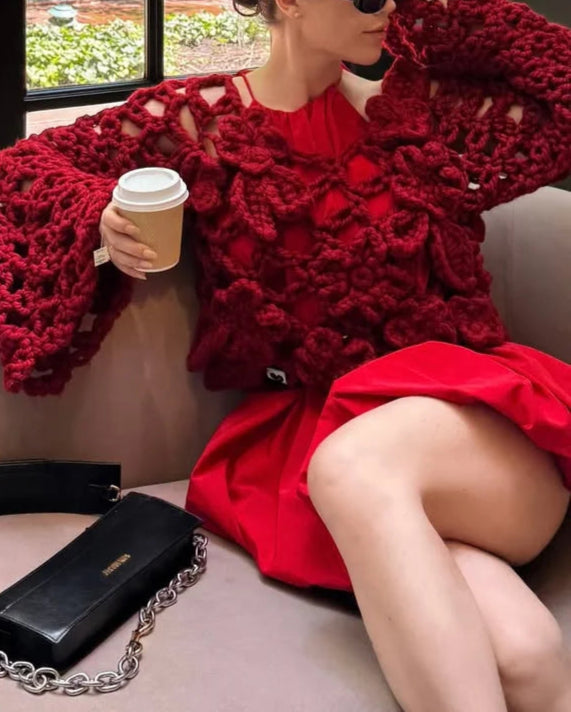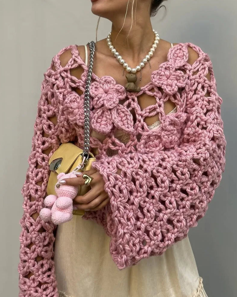 Elegant Women's Crochet Open Knit Sweater Floral Hollow Out Loose Cropped Pullover