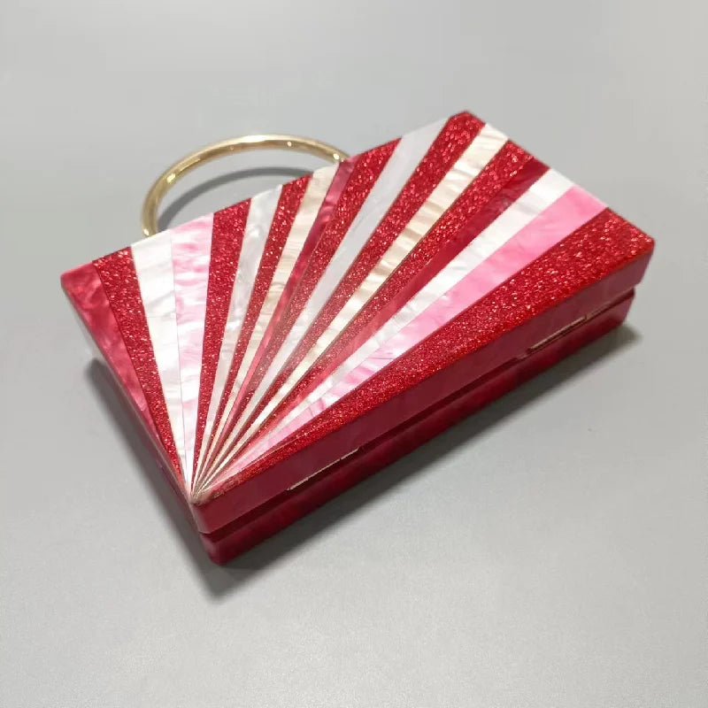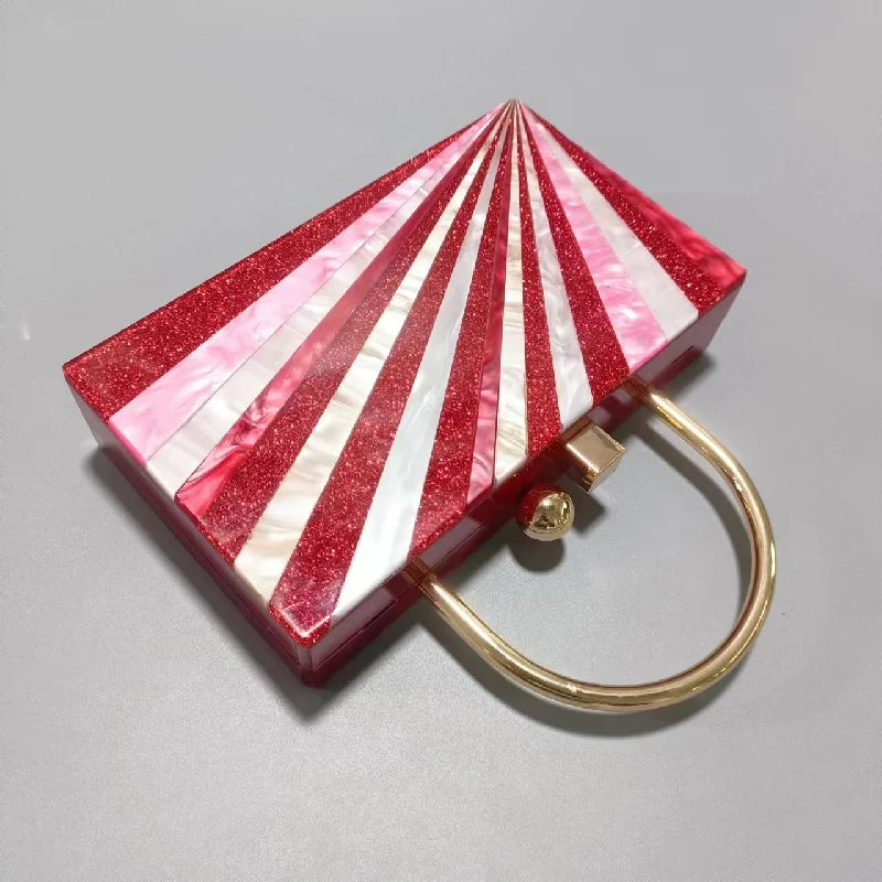 Evening Party Clutch Patchwork Purse Genuine Shoulder Chain Acrylic Handbag