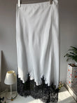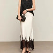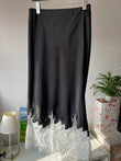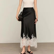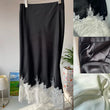 Lace Trim Satin Skirt High Waist Elegant Wrapped Hip Long Midi Skirts