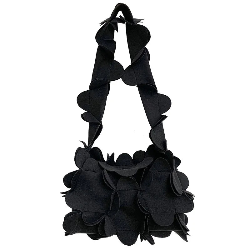 3D Flower PU Leather Armpit Purse Women Solid Color Fabric Crossbody Bag
