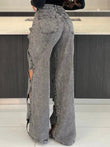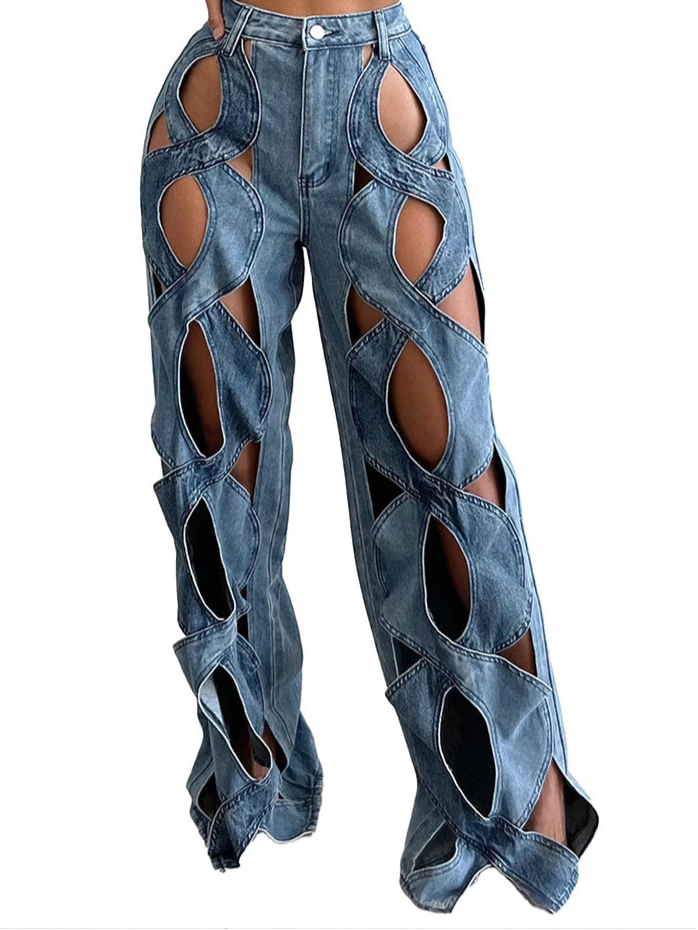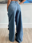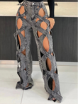 Stretchy Cross Hollow Out Loose Denim Cargo Pants for Women