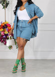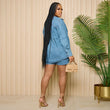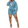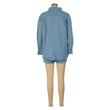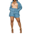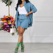 Denim Two 2 Piece Set Long Sleeve Jacket Tops and Jean Shorts