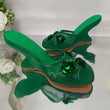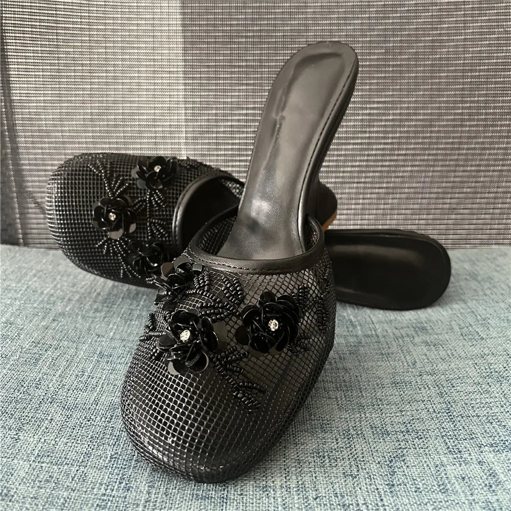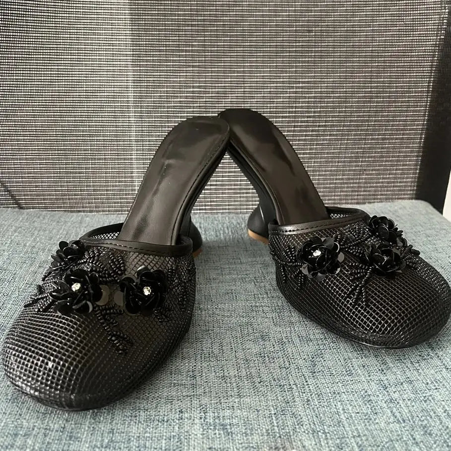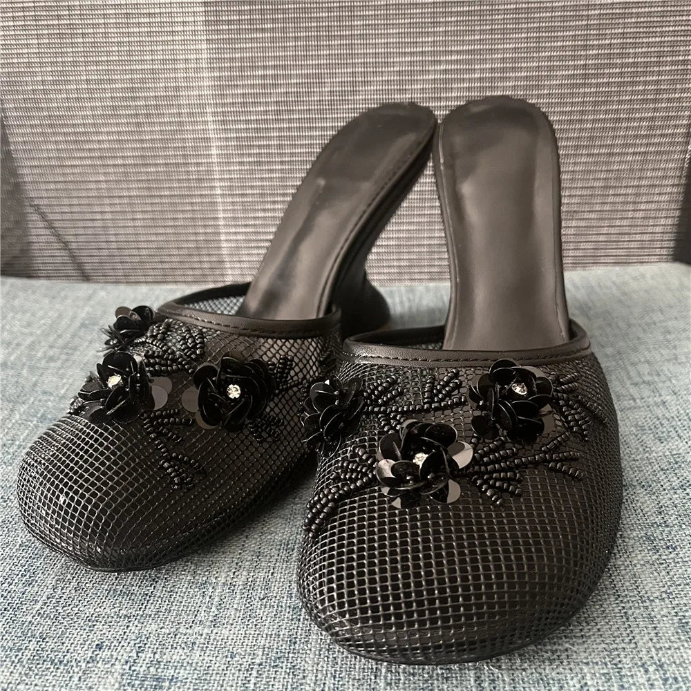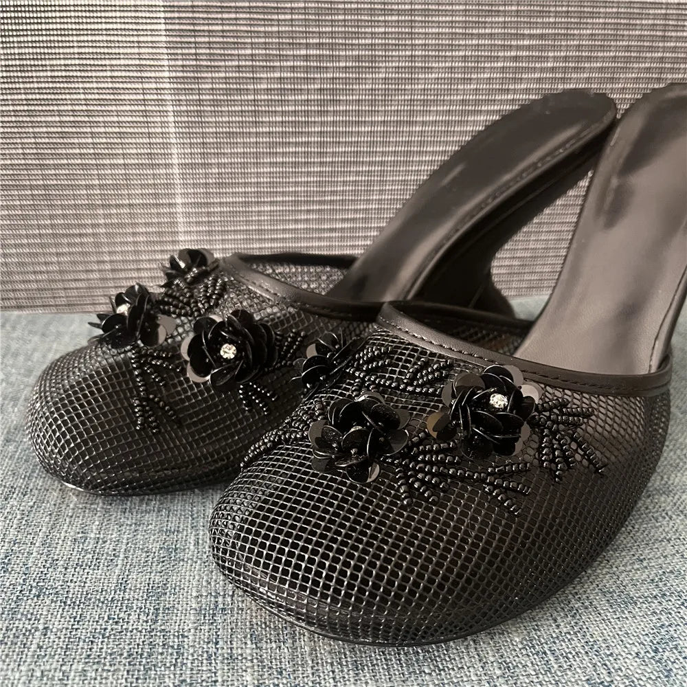 Women Summer Wedges Mesh Shoes Flower Round Toe Slip-On Hollow High Heeled sandals