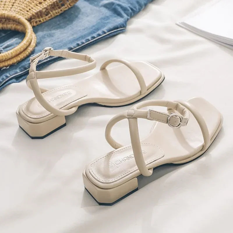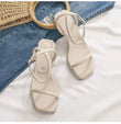Women Buckle Mid-Calf Strap Med Block Heels Luxury Peep Girls Beige Medium Chunky Sandals