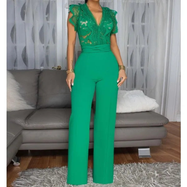 Women's Jumpsuit Lace Splice Sleeveless One-Piece Swimsuit