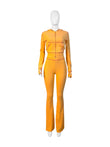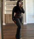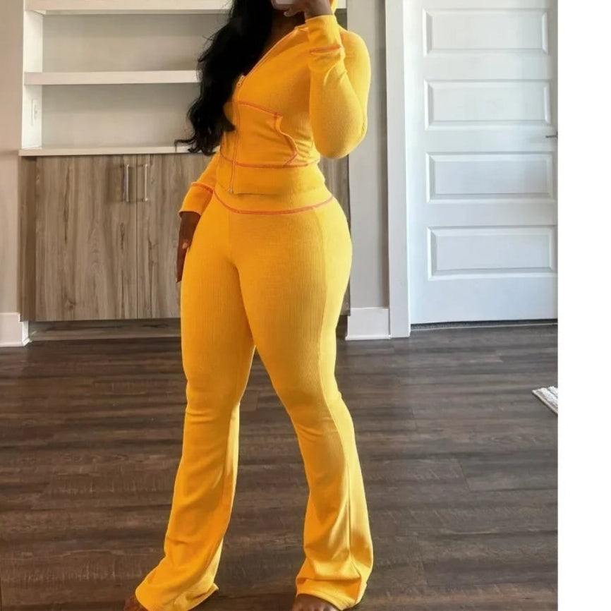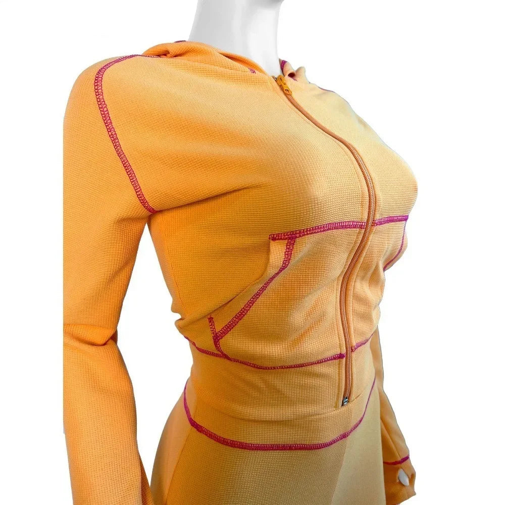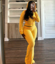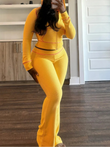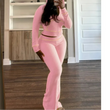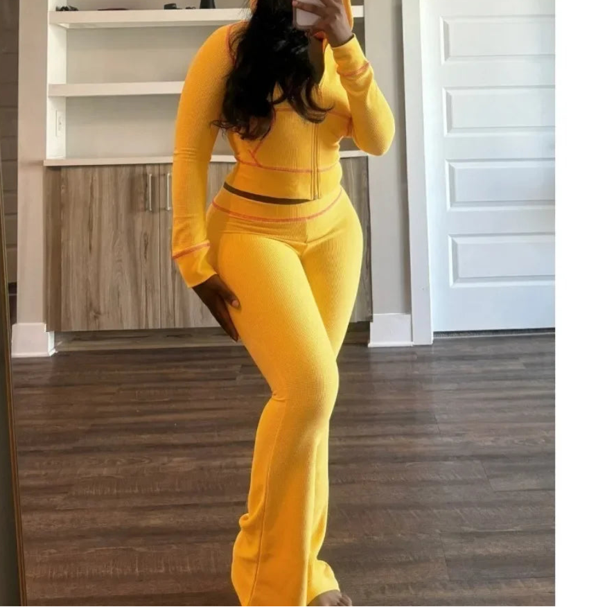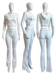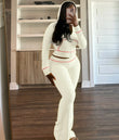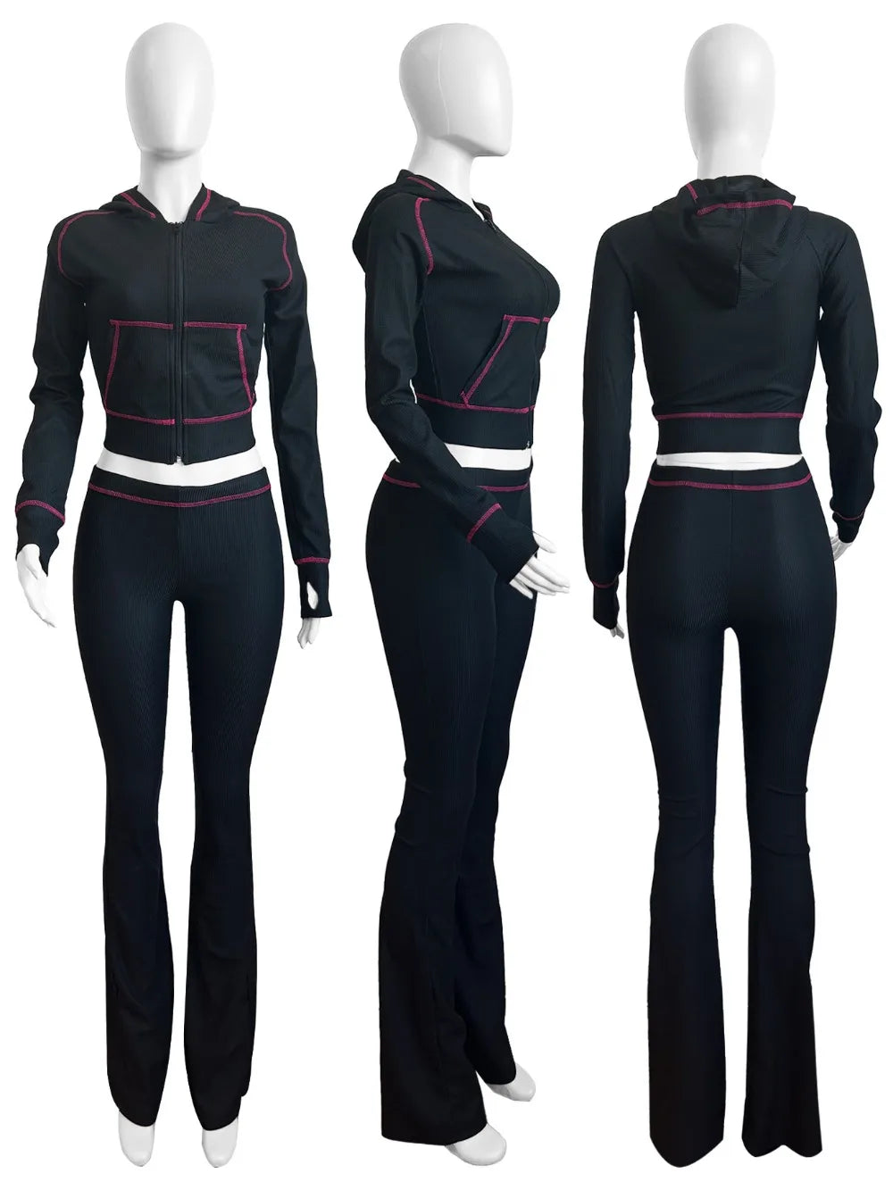 Waffle Texture Striped Women's Two Piece Sets Casual Long Sleeve Hooded Matching Set