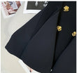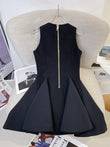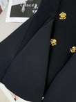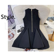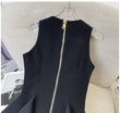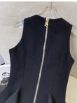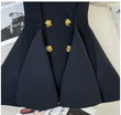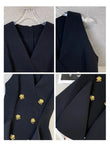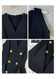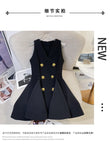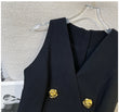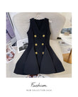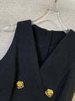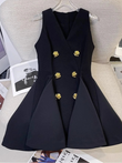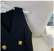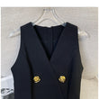 French Elegant Sleeveless A-Line Tunic Blouse Black Classic Gold Button