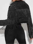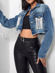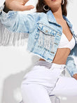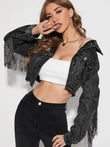 Women's Fringe Jacket Tassel Cropped Denim Jacket Raw Hem Ripped Crop Jean Jackets
