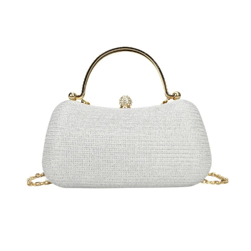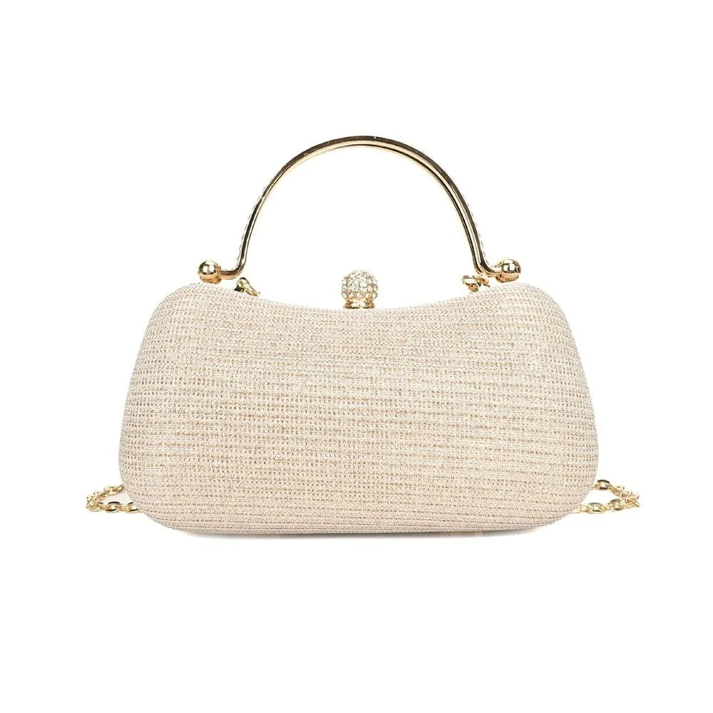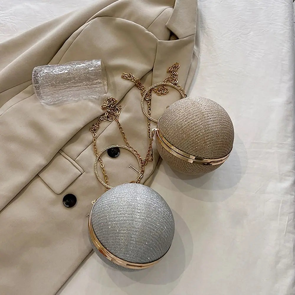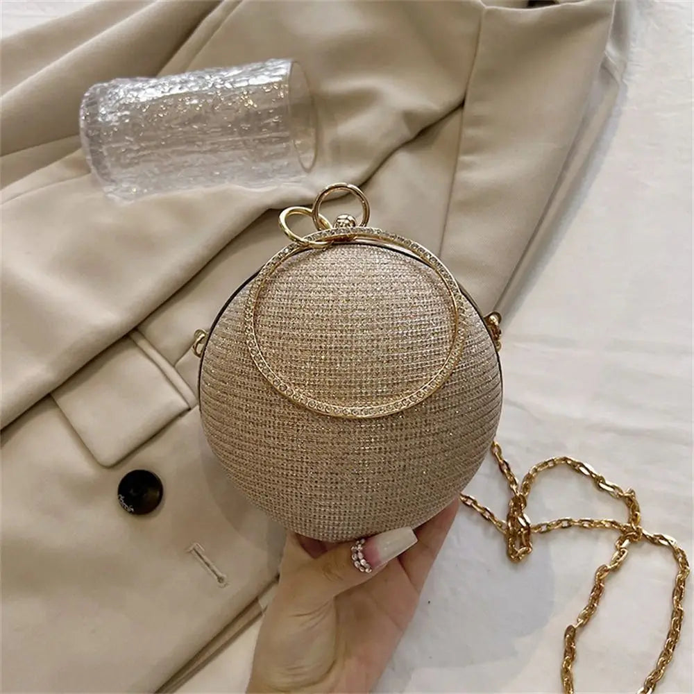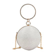 Gold Bright Silk Circular Evening Bag Women Banquet Clutch Rhinestone Shoulder Bags