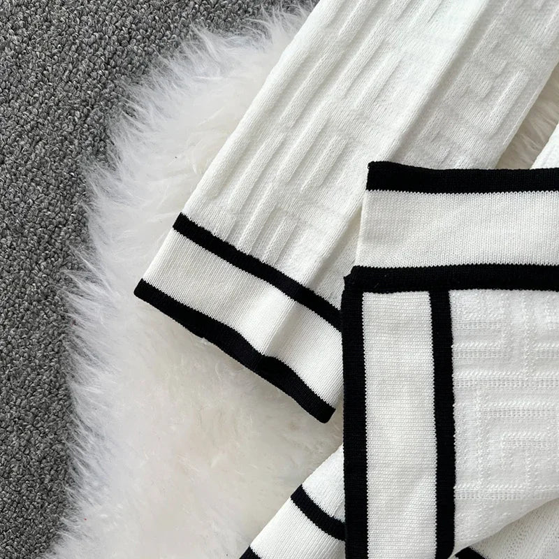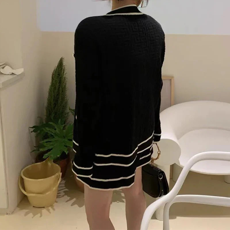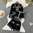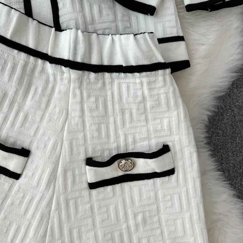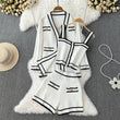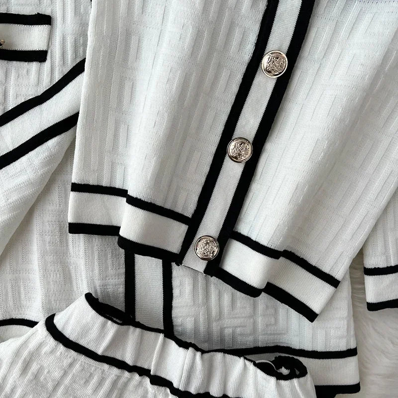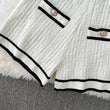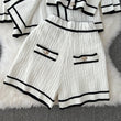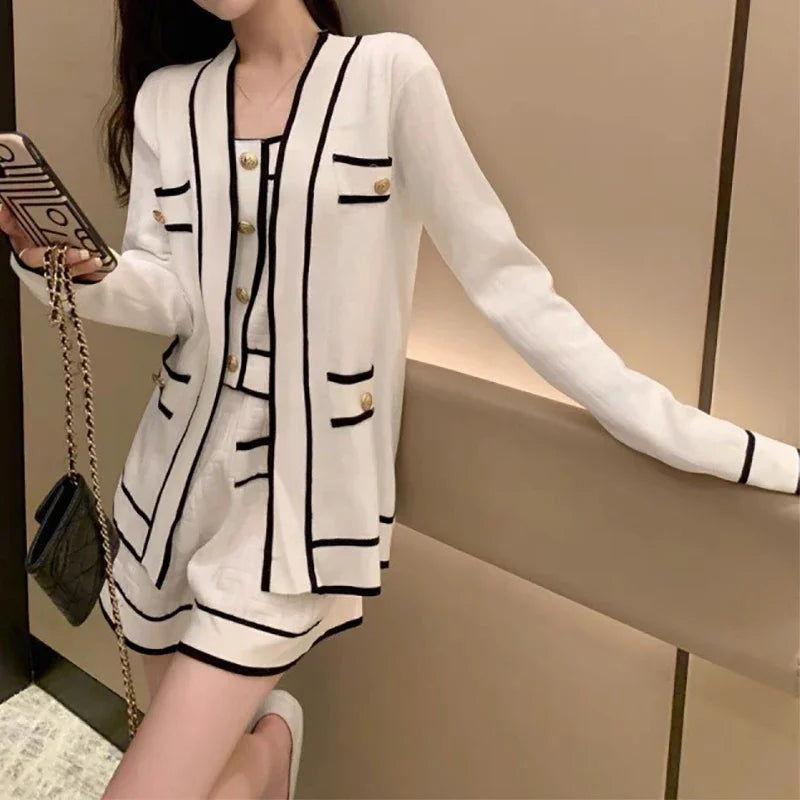 Women Three Piece Set V-neck Long Sleeve Buttons Up Cardigan + Shorts Set