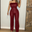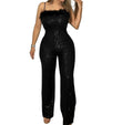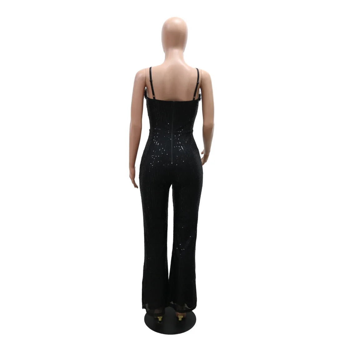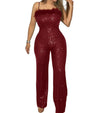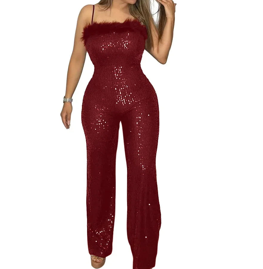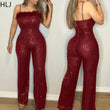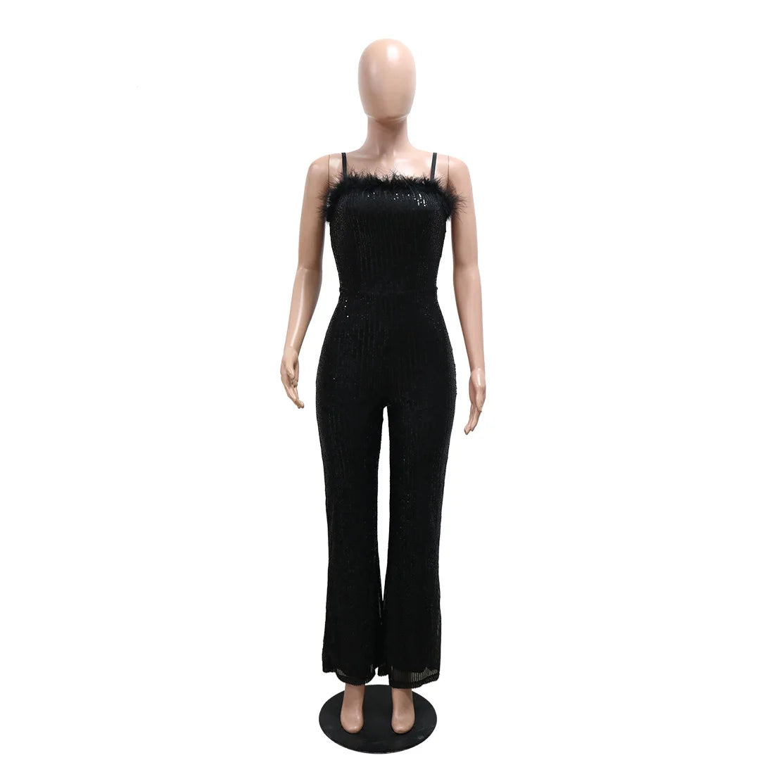 Sequin Feather Spaghetti Strap Jumpsuits Women Sleeveless Playsuits