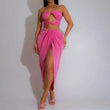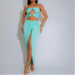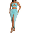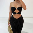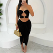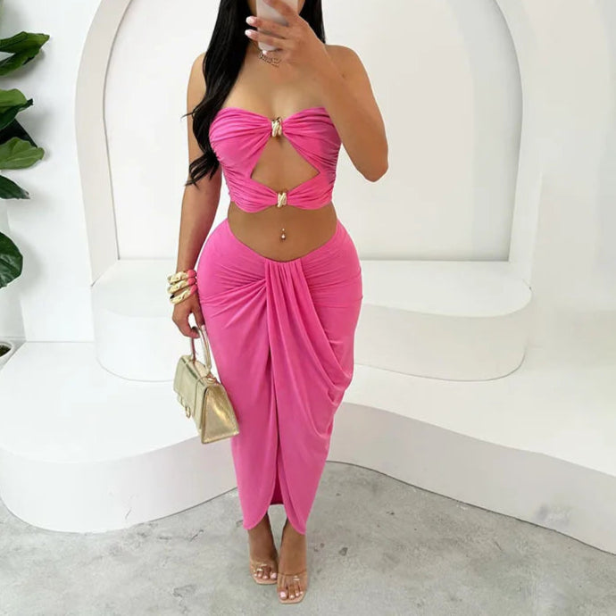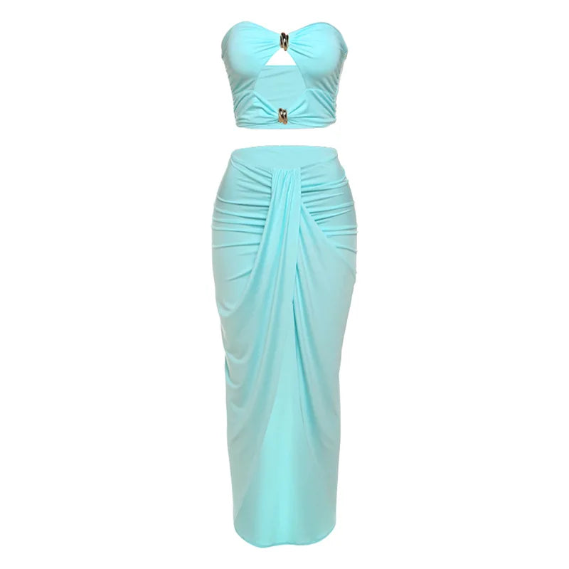 Hollow Metal Buckle 2 Piece Set Resort Wear Women Y2K Split Maxi Skirt Matching Clubwear Outfits