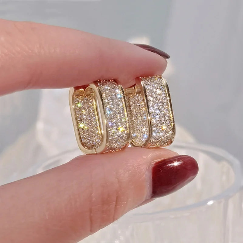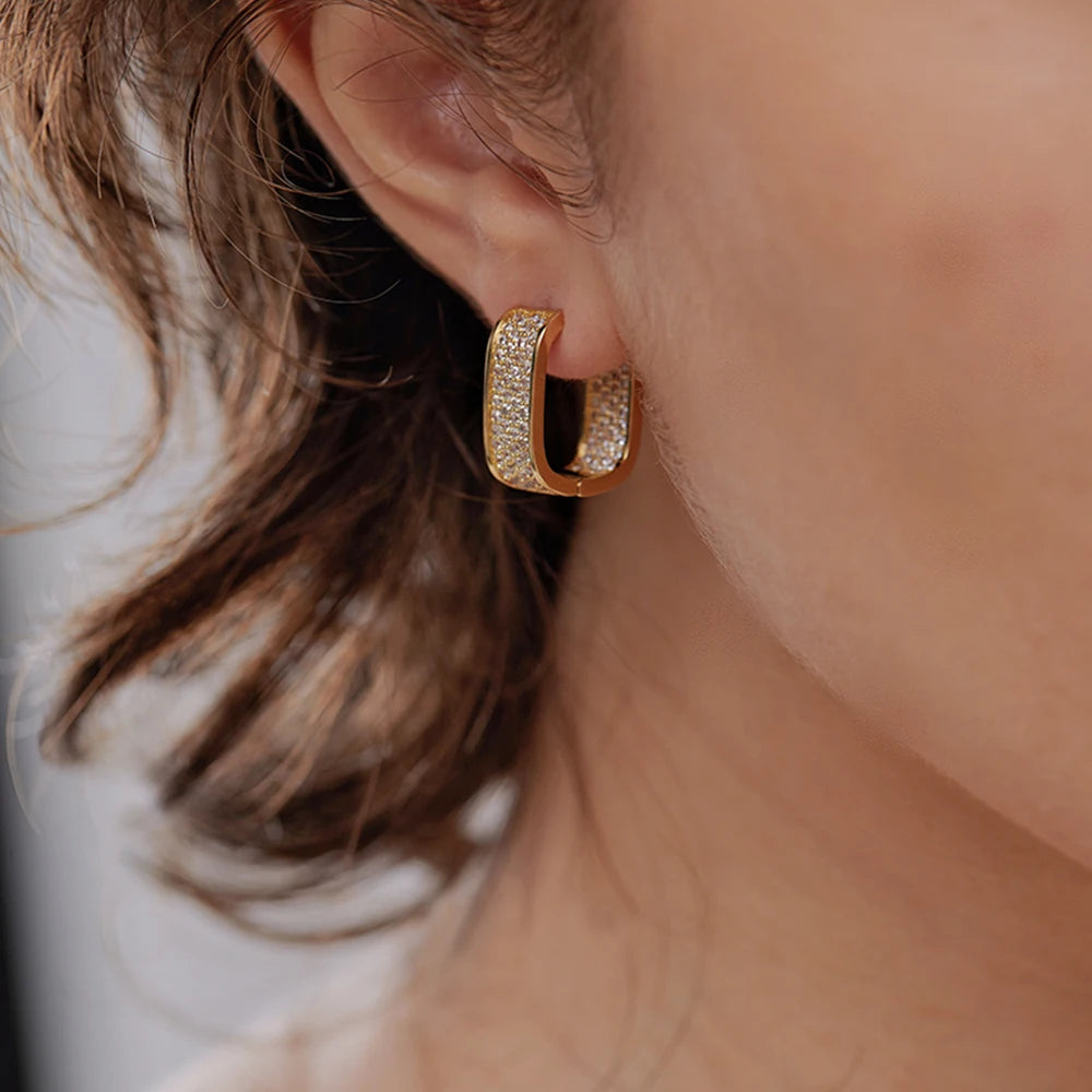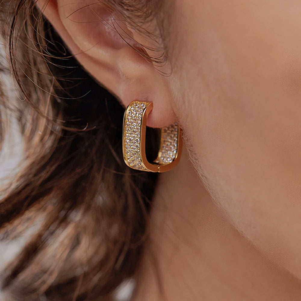 U Hoop Metal Earrings for Women Full Paved Shiny Daily Wear Exquisite Earring