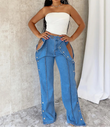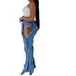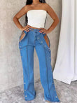 Women Denim Pant Long Pants Slim Fit High Waist Solid Casual Trousers