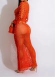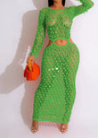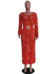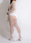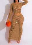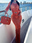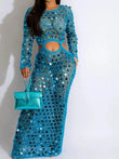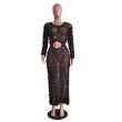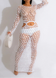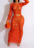 Fishnet Knitted Sequin Maxi Dress Sexy See Through Vacation Beach Dress Resort Wears