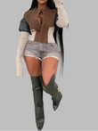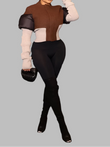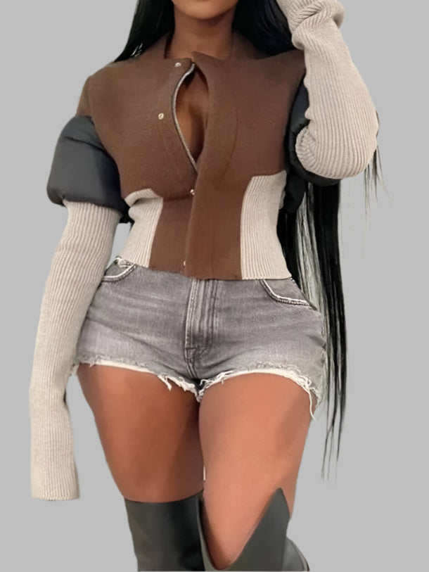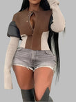 Contrast Color Autumn Coats Women Patchwork Long Sleeve Zip-up Slim Fit Jackets Female Outwear