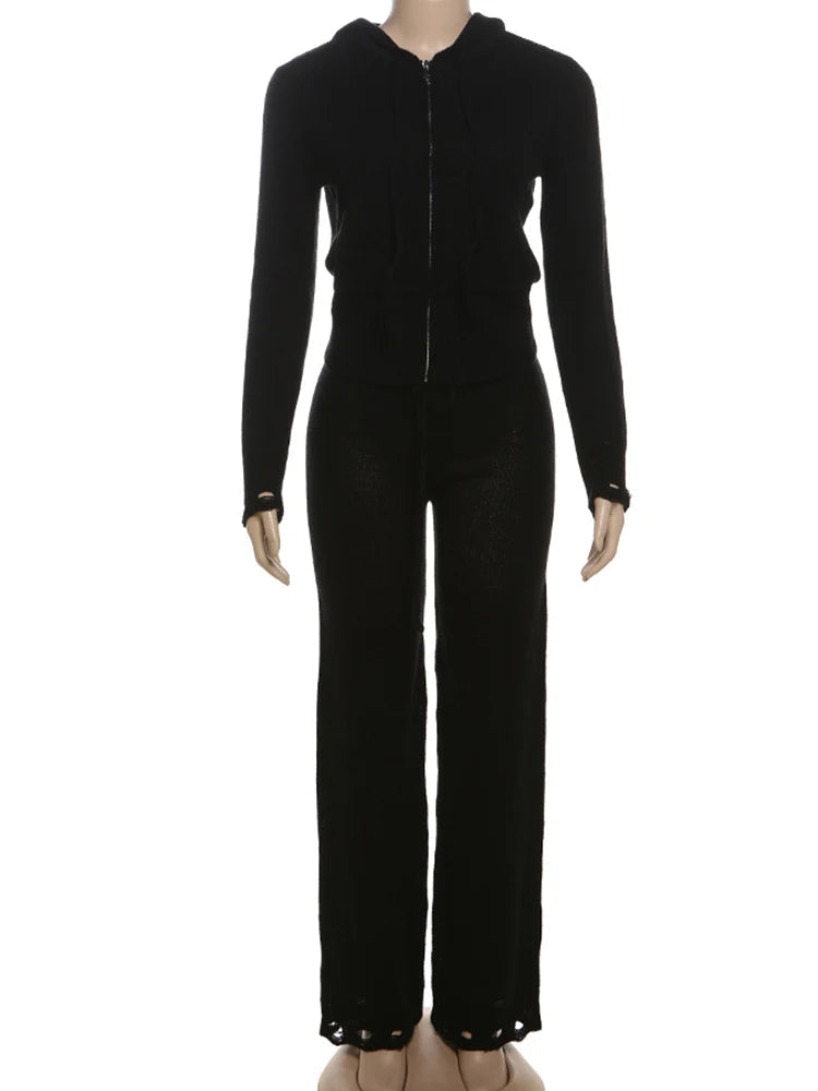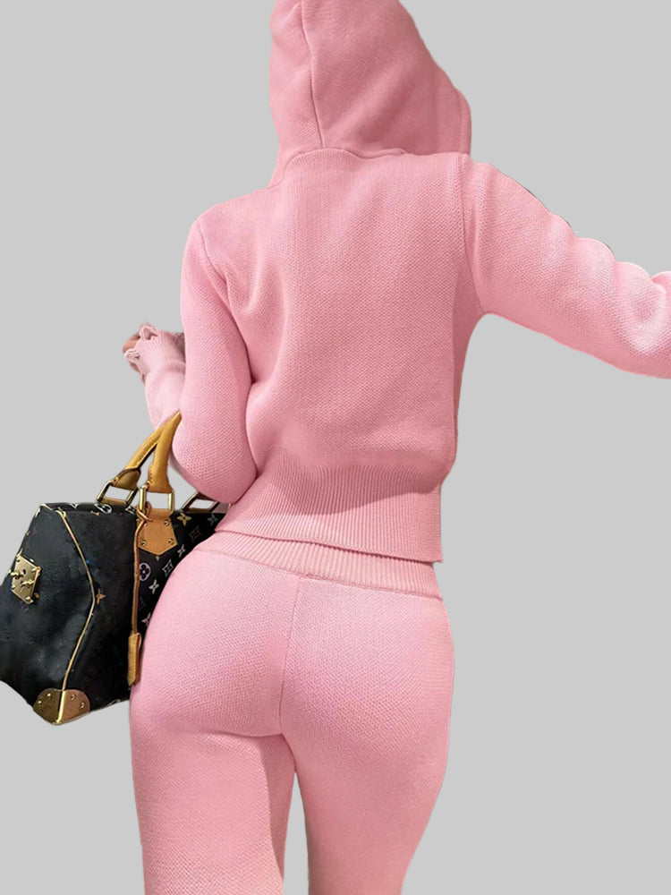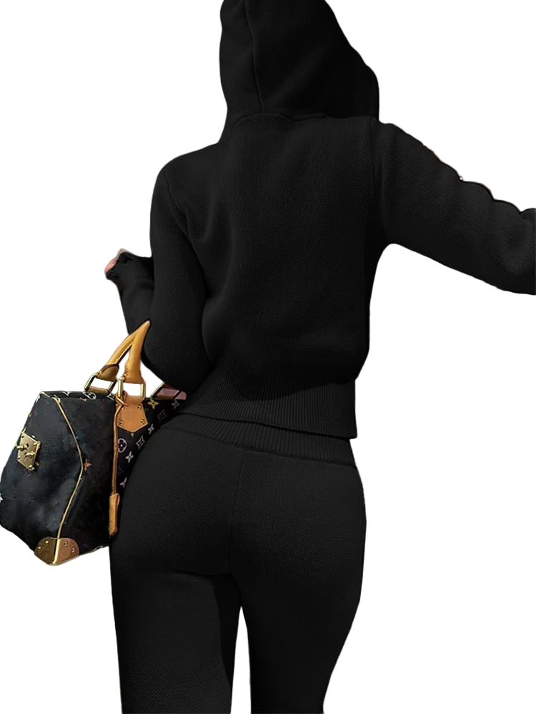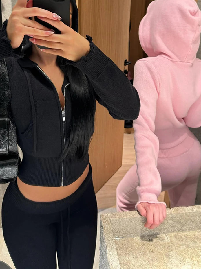 Women 2 Piece Set New Matching Outfits Sporty Hooded Zip-up Crop Tops + Bandage Pants Tracksuits