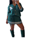 Knit Pleated Sweater Skirts 2 Two Piece Set Letter Button Cardigan With Matching Mini Skirt Sets