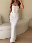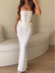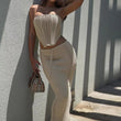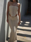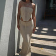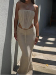 Backless Long Skirt and Top Set Summer Lace-up 2 Pieces Skirt Set Bikini Cover ups