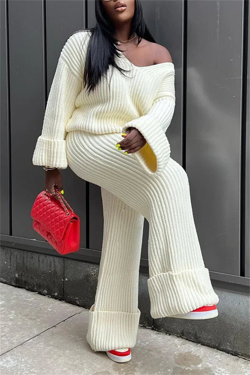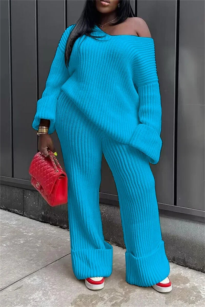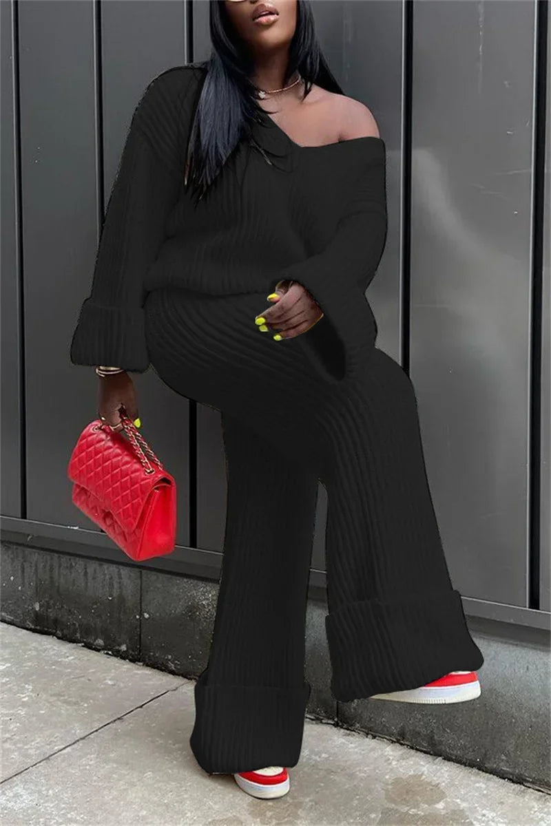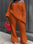 Knitted Ribbed Sweater Sets for Women 2 Piece Outfits Winter Clothes Casual Loose Matching Set