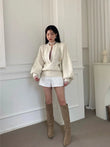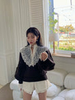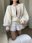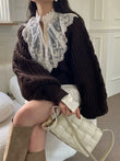 Chic Fried Dough Twists Pattern Pullover Loose Lantern Sleeve Knit Sweater