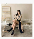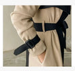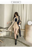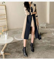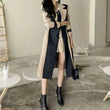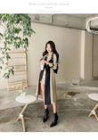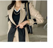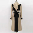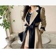 Contrast Full Sleeve Buttons Belted Women Long Trench Coats