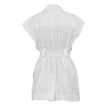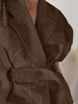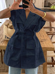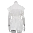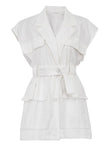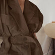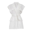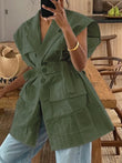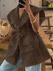 Sleeveless Blazer With Notched Pockets Belt Gathered Waist Solid Coat
