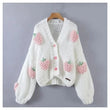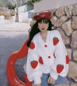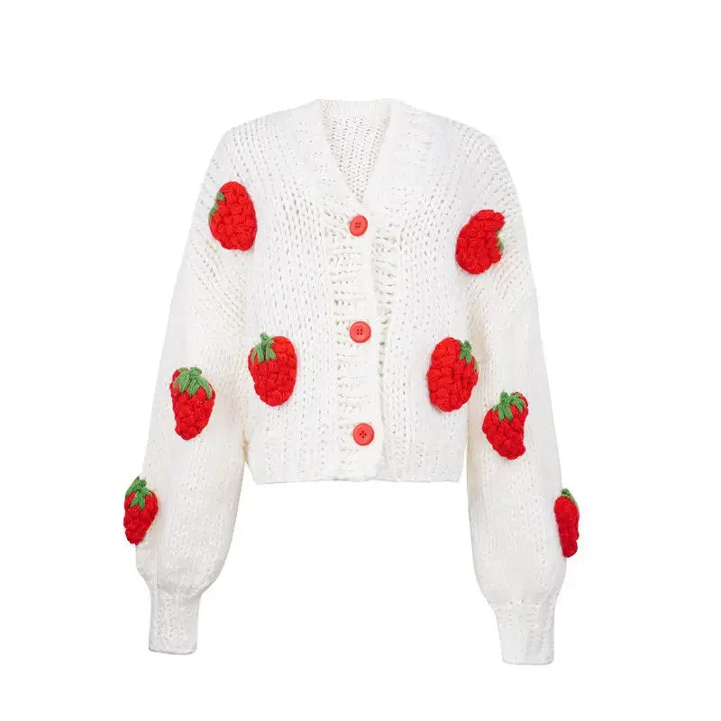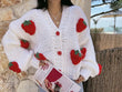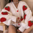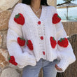 Large Size Women Sweater Puff Sleeve Strawberry Sweet Full Cardigans Loose Girls Sweater
