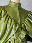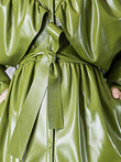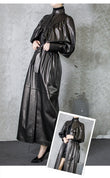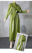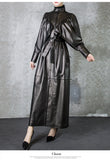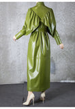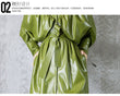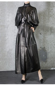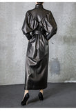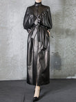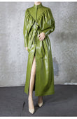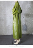 Green Black Maxi Soft Faux Leather Trench Coat for Women Luxury Retro Trench Coat