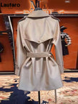 Autumn Khaki Satin Trench Coat for Women British Style Belted Double Breasted Coat