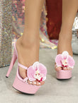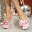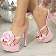 Sexy Pink High Heels For Woman Flowers Open Toe Party Stripper Shoes Platform Sandals
