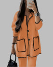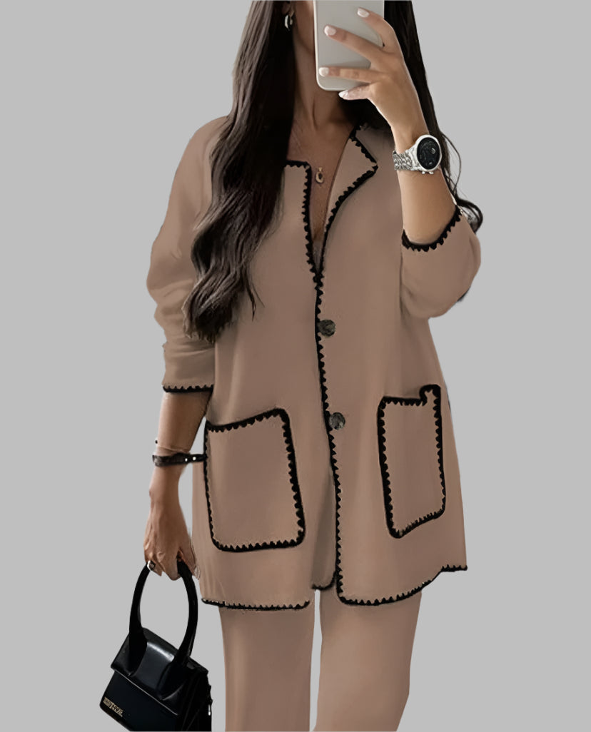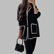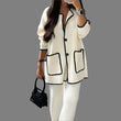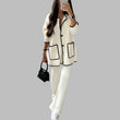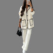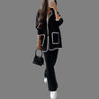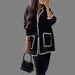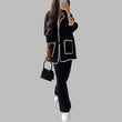 Casual Women's Suit Autumn Double Pocket Cardigan Loose Solid Pant Two piece Set