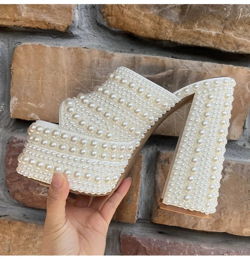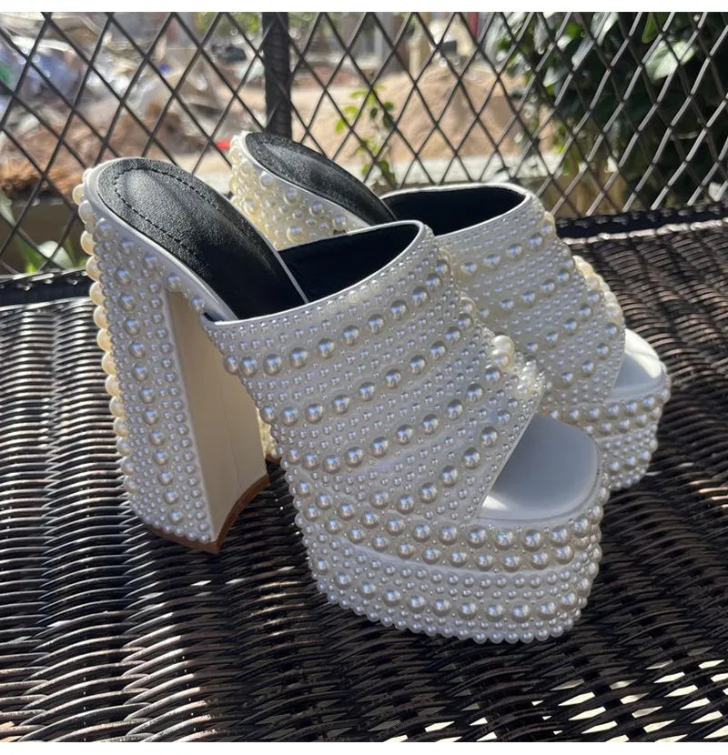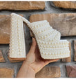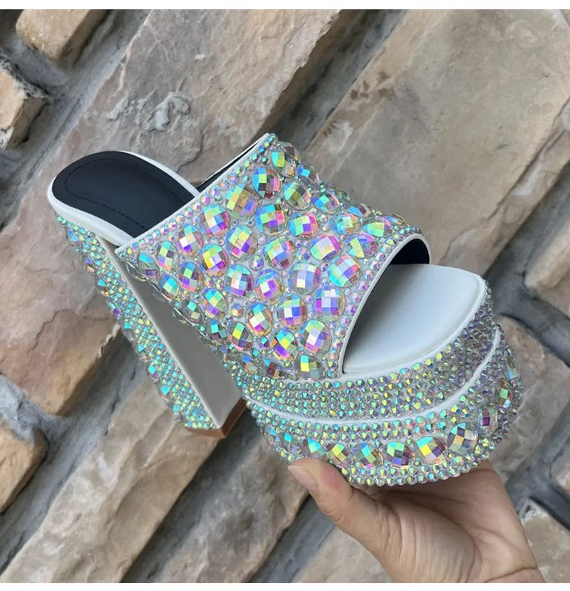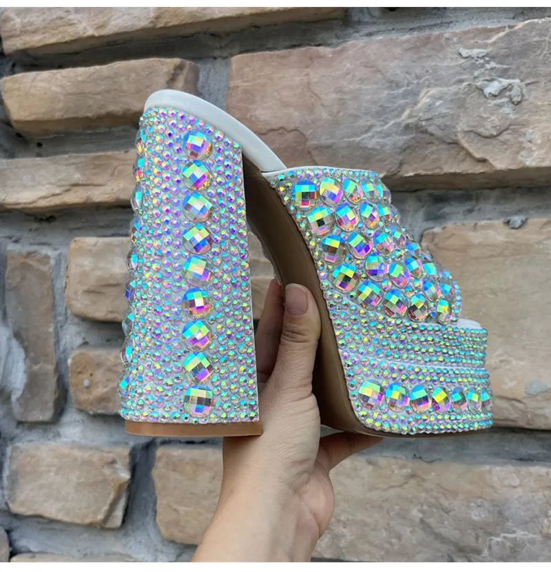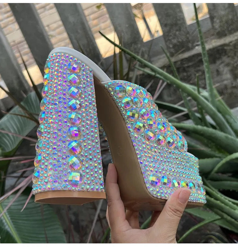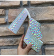 Handmade Full Rhinestones Platform Wedges Women High heels Chunky Shoes