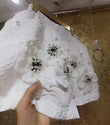 Luxury Style Pearls Beaded 3D Flower Wide Leg Shorts Women's Short Pants Elastic Waist