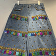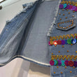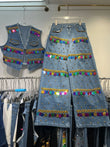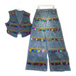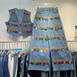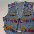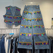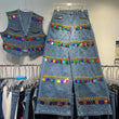 Sequined Denim Rhinestones Jeans Sleeveless Cowboy Vest + Jeans Pants