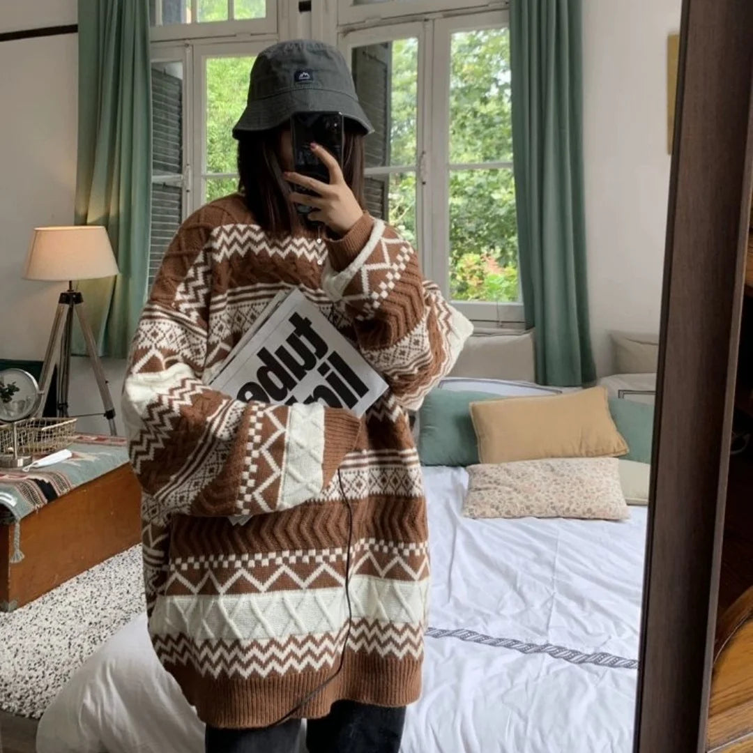 Unisex Retro Thickened Vintage Christmas Sweater Couple Matching Winter Clothes Ugly Sweater