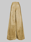 Women's Stylish Party Wear Pants Solid Gold High Waist A-line Wide Leg Pants Zippered Full-length Trousers