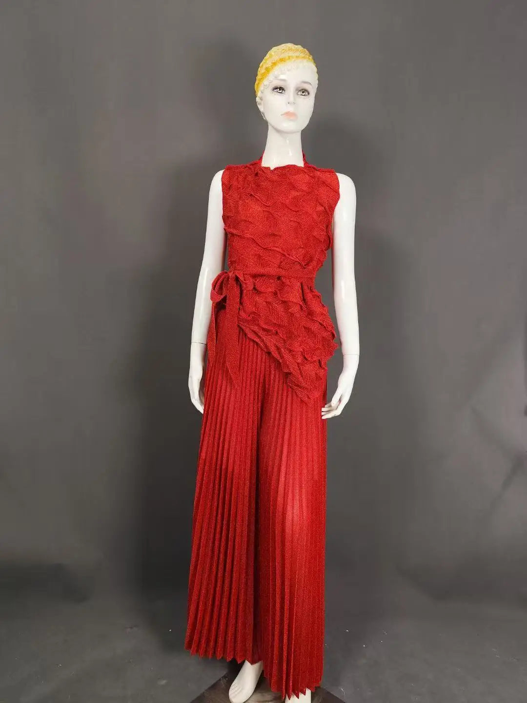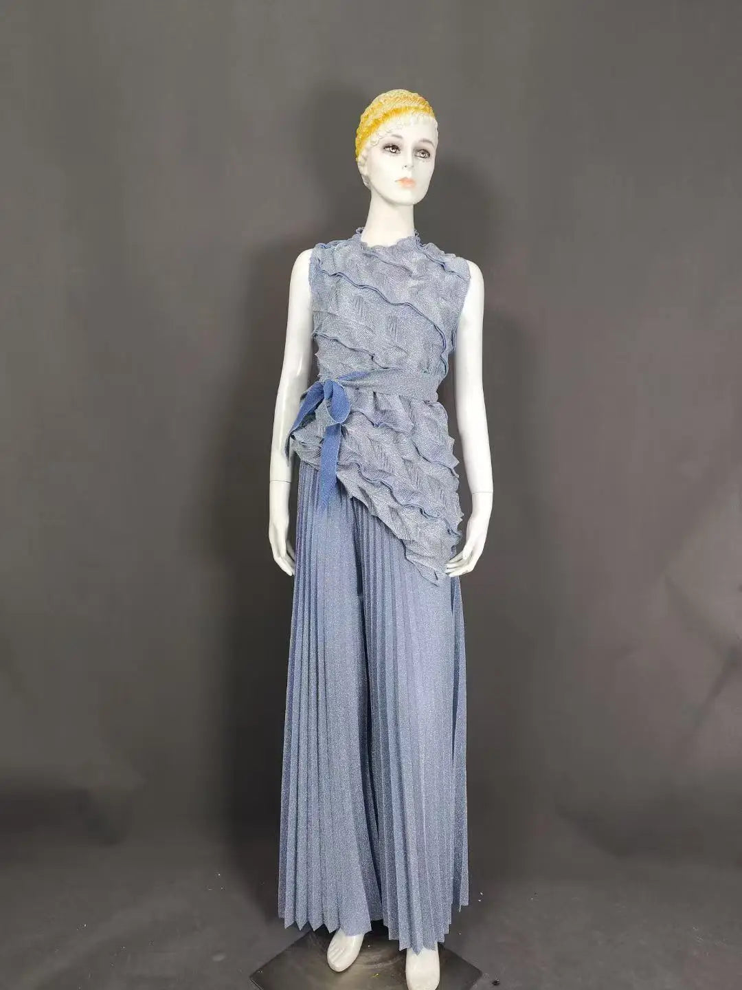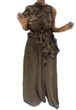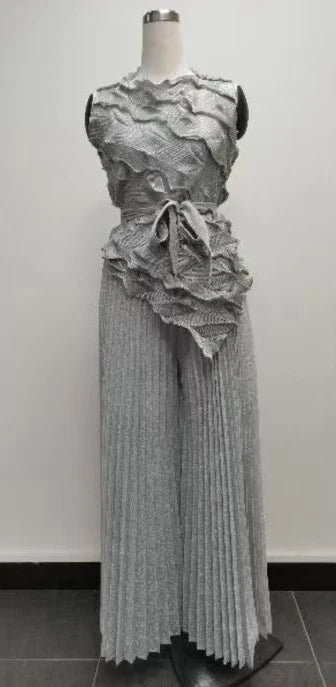 Women's Casual Sleeveless Blouse and Loose Wide Leg Pants Two-piece Set