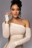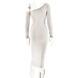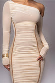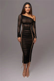 Diagonal Collar Long Sleeve Midi Bodycon Dress For Women Two Layer Mesh