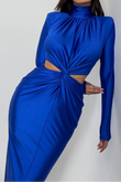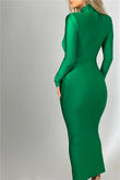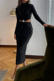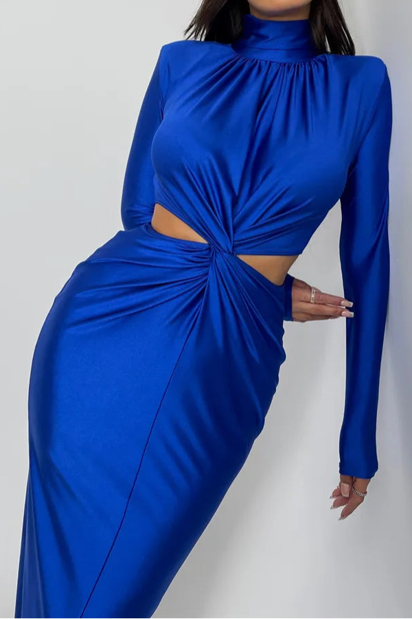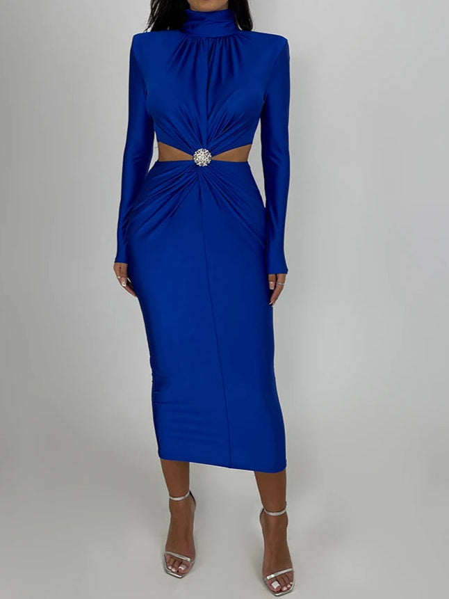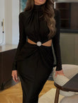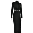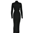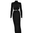 Elegant Hollow Out Sexy Maxi Dress For Women Turtleneck Long Sleeve Bodycon Dress