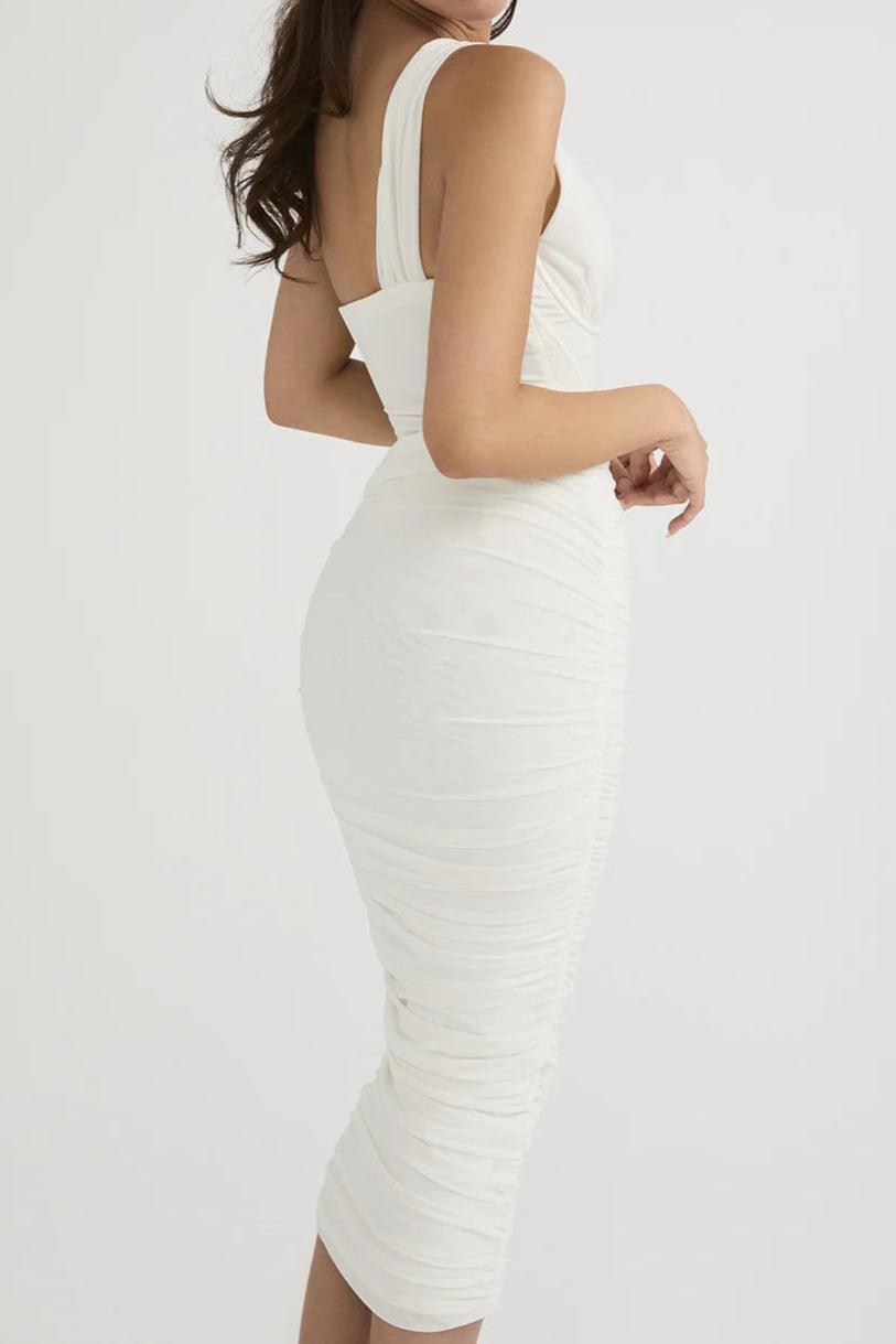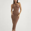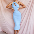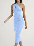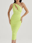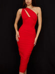 High Quality Mesh One Shoulder Backless Midi Bodycon Dress For Women