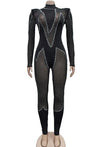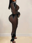 Sheer Mesh Crystal Jumpsuits Women Sheer Party Skinny One Pieces Rompers Birthday Outfits