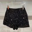 Black Velvet Sequin Shorts Women Sequined Shiny Versatile Short Pants Clubwear Shorts Hot Pants High Street
