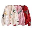 Embroidery Knitted Cardigan Women's Sweater Warm Long Sleeve V Neck Jumpers