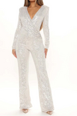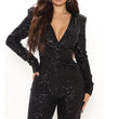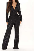 Sequin Jumpsuit Women Deep V Neck Slim Sequin Romper Women Jumpsuits