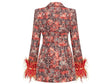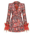 High-end Women's Blazer Dress Cuffs Adorned with Feather Print Dress